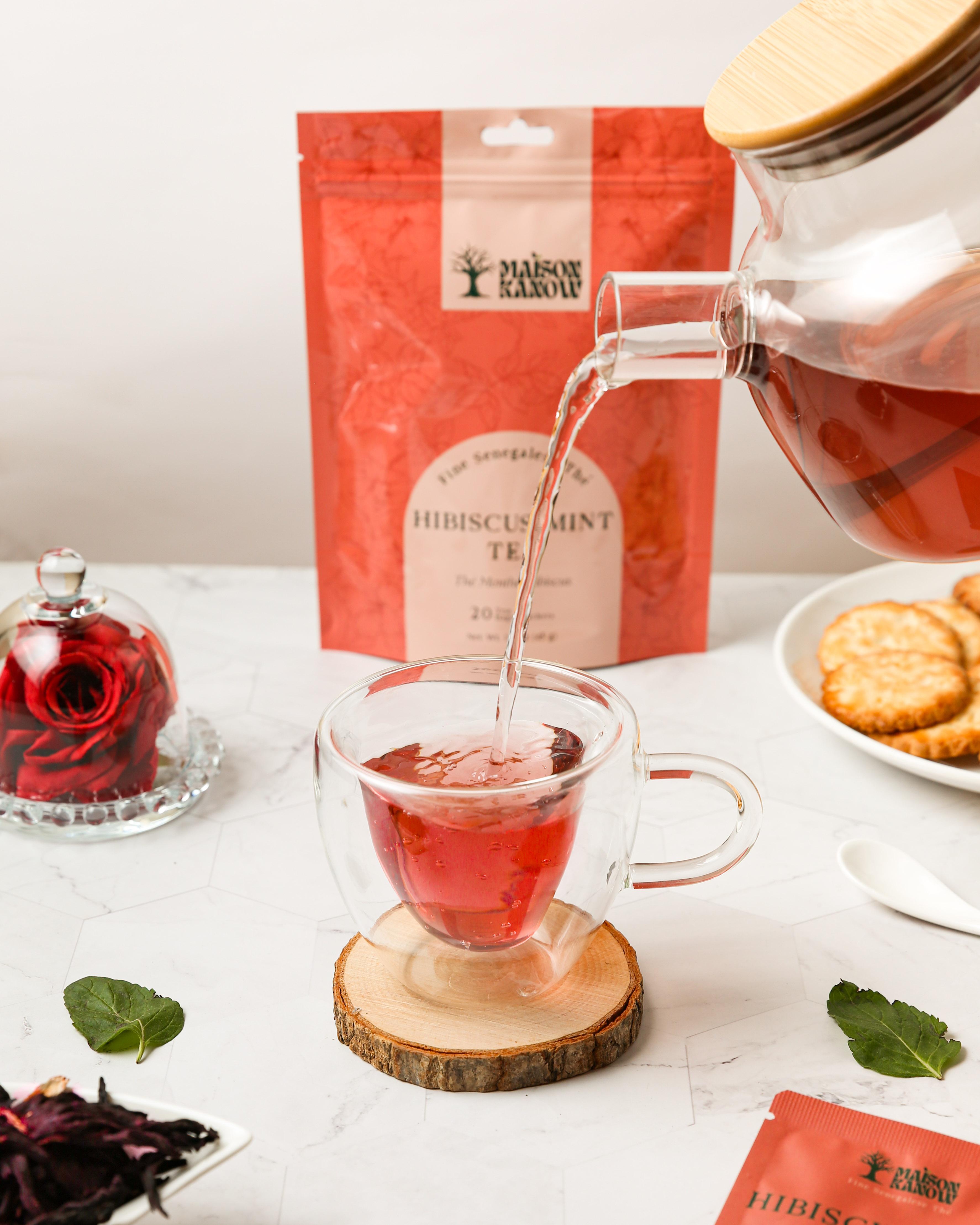 Le thé hibiscus menthe Maison Kanow est une infusion vibrante et rafraîchissante, alliant la profondeur fruitée de l’hibiscus à la fraîcheur naturelle de la menthe. Naturellement sans caféine, il offre une boisson équilibrée, idéale chaude ou glacée.